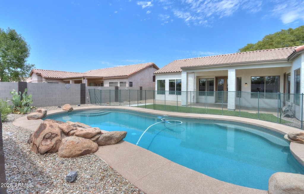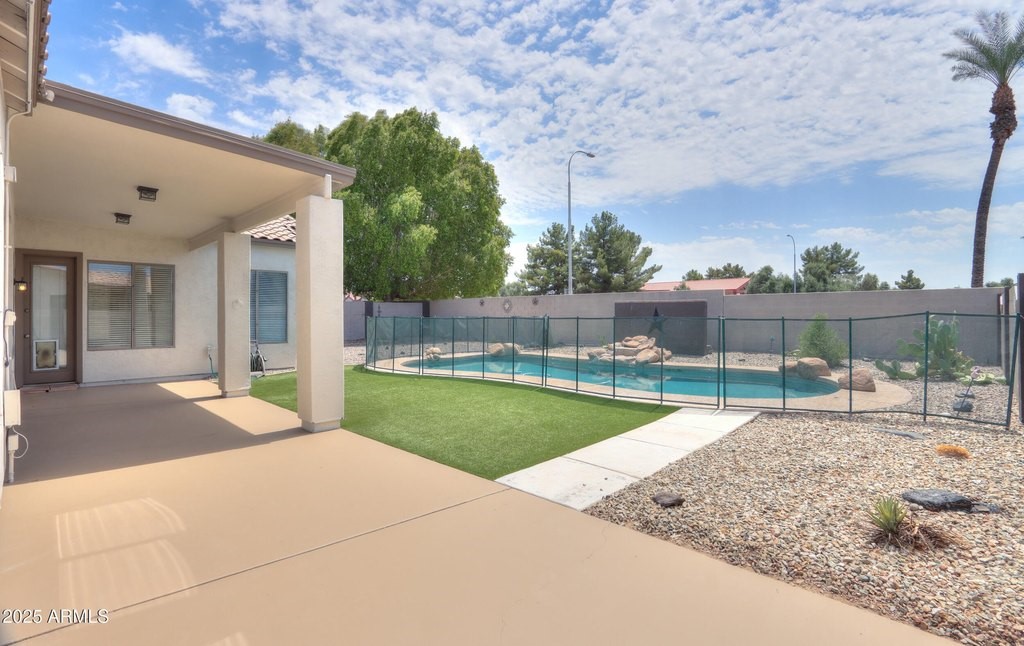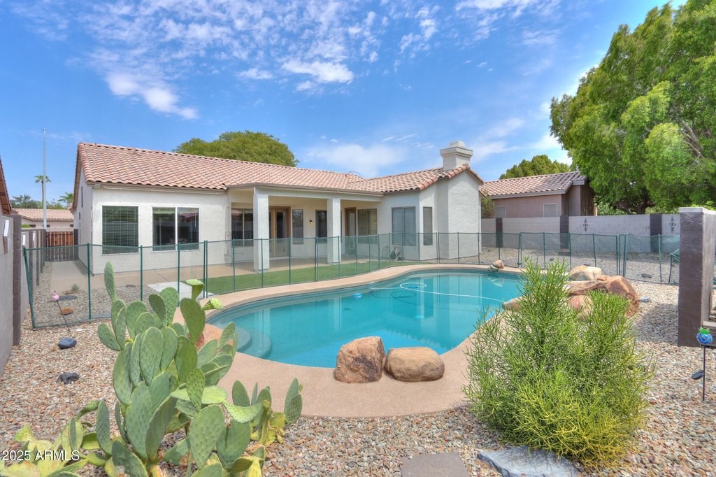 Located in the heart of the Chandler Tech Corridor, this home awaits your arrival and personal touch. A charming front porch and very strong security door welcome you to this large single story home with oversized primary bedroom featuring custom bath vanities and large walk in closet, 2 additional larger bedrooms with ceiling fans, and a doubled door entry den as a possible 4th bedroom. Spacious kitchen with granite counter tops, large island, newer appliances and plenty of storage. Outside you'll cool off in a beautiful pebble tech pool for those overly warm AZ afternoons, and large covered patio for shade. This home still needs a little TLC and is priced slightly below market value with a motivated seller ... great opportunity. Come on by today